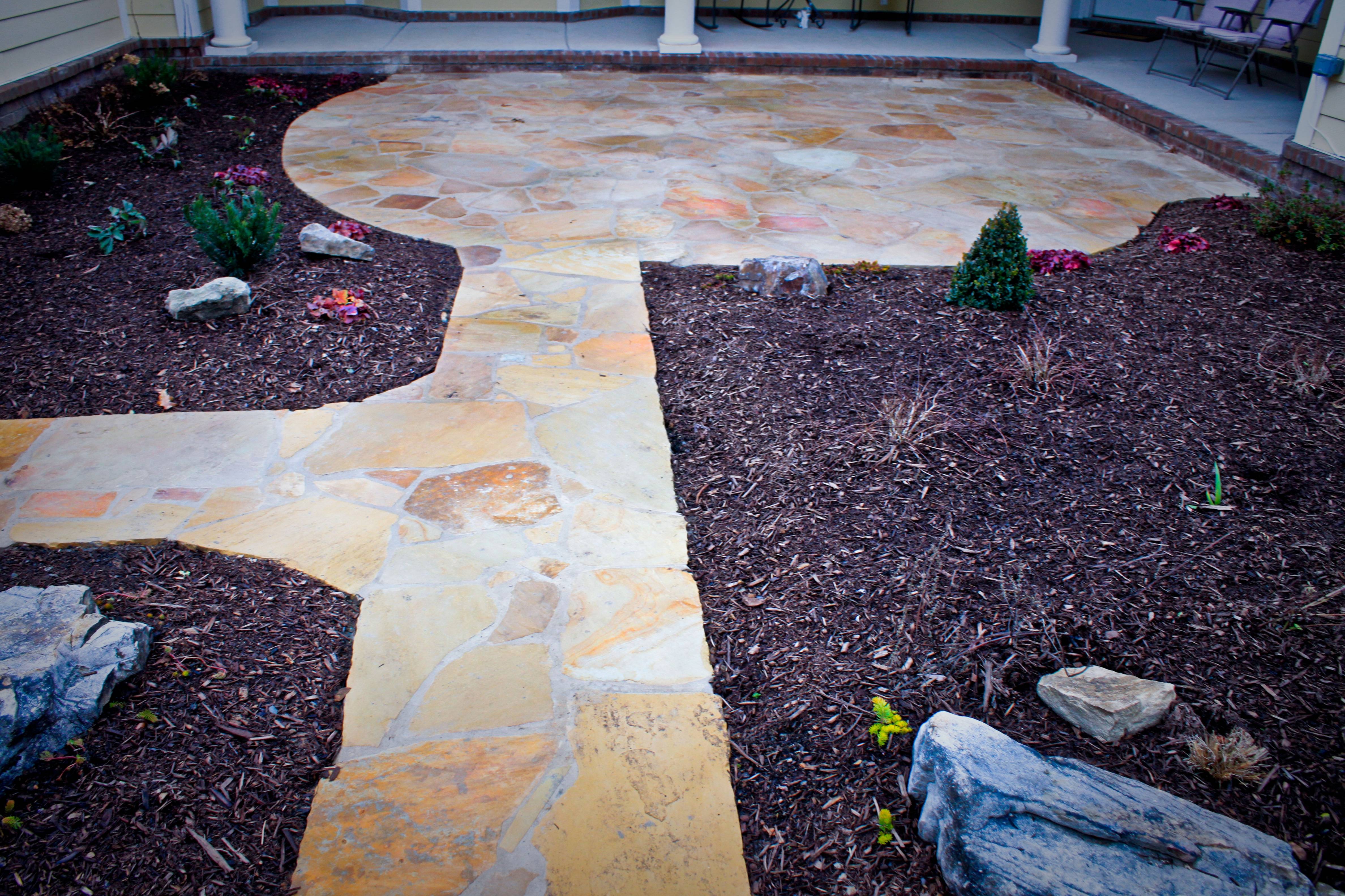 There is no real pattern with natural stone placement, since the pieces do not fit together in the same way that pavers do, however, there are still important things to note about the layout of your natural stone. Smaller pieces should be located towards the outer edge of a walkway or patio, as they will make the edge more even. Likewise, larger pieces should be located more centrally.